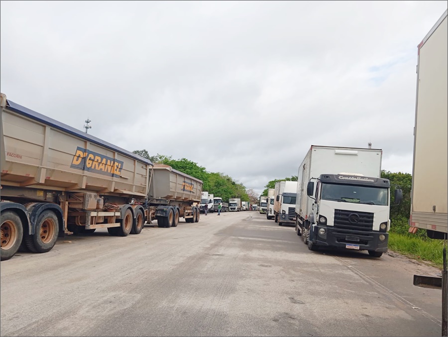 Caminhoneiros permaneceram parados por mais de 18 horas no Trevo da Veracel, em condições desumanas, já que não existem locais para alimentação e nem necessidades básicas.