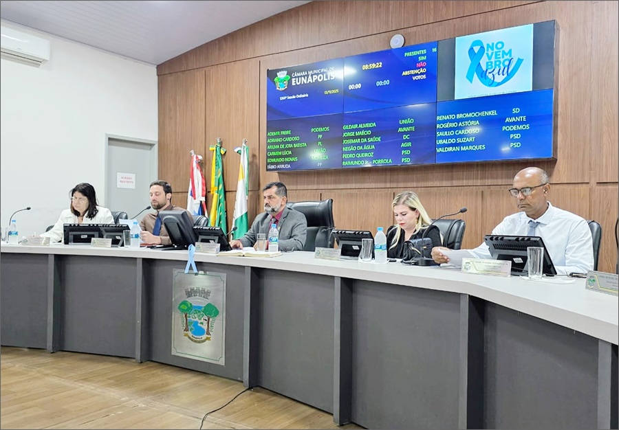 Os vereadores da Câmara de Eunápolis, em Sessão Ordinária realizada nesta quinta-feira (13/11), aprovaram, por unanimidade, três projetos de Lei de autoria do Poder Executivo e quatro proposituras assinadas pelos parlamentares, além de dois requerimentos e dez indicações.