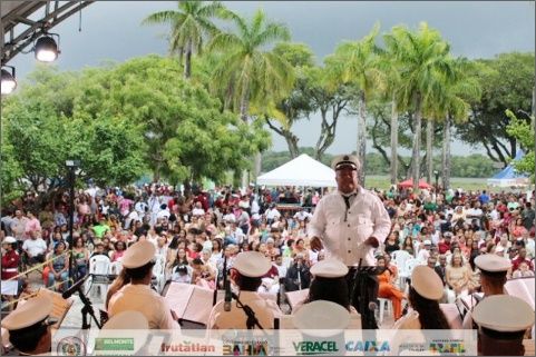Na Praça da Bandeira, o público que lotou o espaço recepcionava 10 filarmônicas de forma calosa em um ambiente que recebeu toda infraestrutura da gestão municipal para acomodar de forma segura e confortável a comunidade e visitantes.
