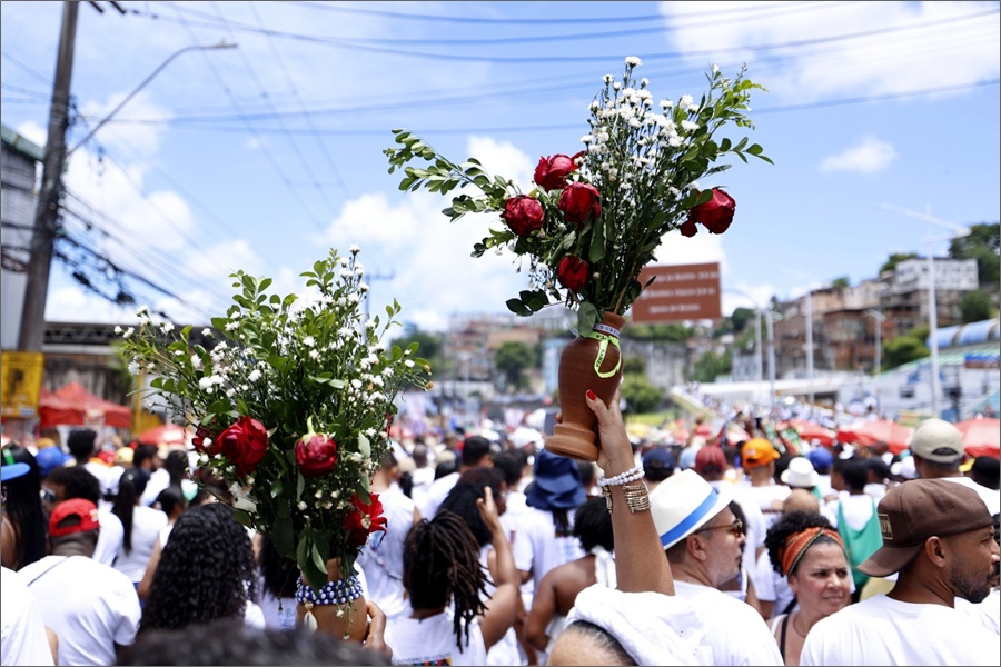 Uma das mais importantes manifestações populares, culturais e religiosas da Bahia, a celebração reuniu milhares de fiéis, baianos e turistas, reafirmando a força da fé e do sincretismo religioso que marcam a identidade do povo baiano. Com o tema deste ano, “O Exercício do Ministério Público de Jesus, o Amado Senhor do Bonfim”, a festa reforça seu significado religioso e social. Para o fiel João Silva, que acompanha a Lavagem do Bonfim há mais de 20 anos, a celebração é um momento especial. “Todo ano eu venho agradecer e renovar minha fé. O Bonfim representa esperança, proteção e força para seguir em frente”, afirmou.