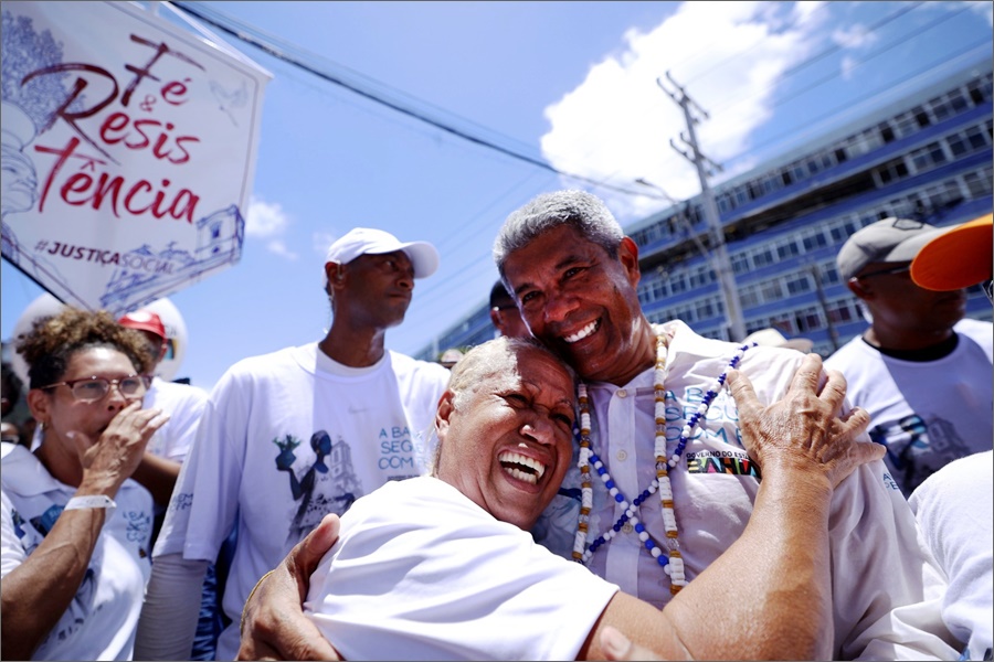 “Uma caminhada bonita. A gente vem abraçando o povo, sendo abraçado e deixando aqui os pedidos nossos para que 2026 seja de muita paz, saúde e dinheiro no bolso. Uma caminhada muito especial pedindo pela paz no mundo, pelo combate à fome, pedindo pelo emprego das pessoas e a saúde pra todos nós”, ressaltou o chefe do Executivo baiano.