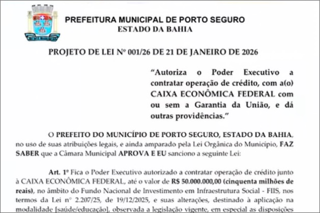 O vereador Bolinha voltou a subir o tom contra a gestão do prefeito Jânio Natal (PL) ao denunciar o projeto que autoriza a Prefeitura de Porto Seguro a contratar um novo empréstimo de R$ 50 milhões junto à Caixa Econômica Federal.