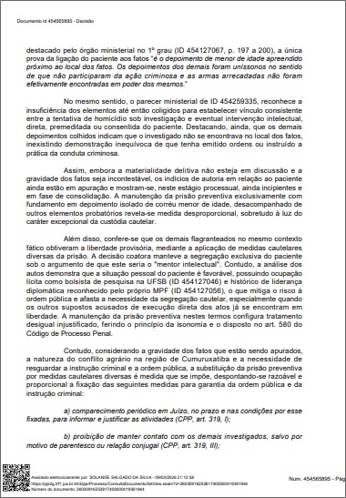 Além disso, a defesa alegou que era injusto manter o "mentor" preso enquanto os supostos atiradores (executores diretos) já tinham sido soltos pela justiça. Foi ressaltado ainda que Rodrigo é bolsista de pesquisa da Universidade Federal do Sul da Bahia (UFSB) e possui histórico de liderança diplomática, o que pesou a seu favor.