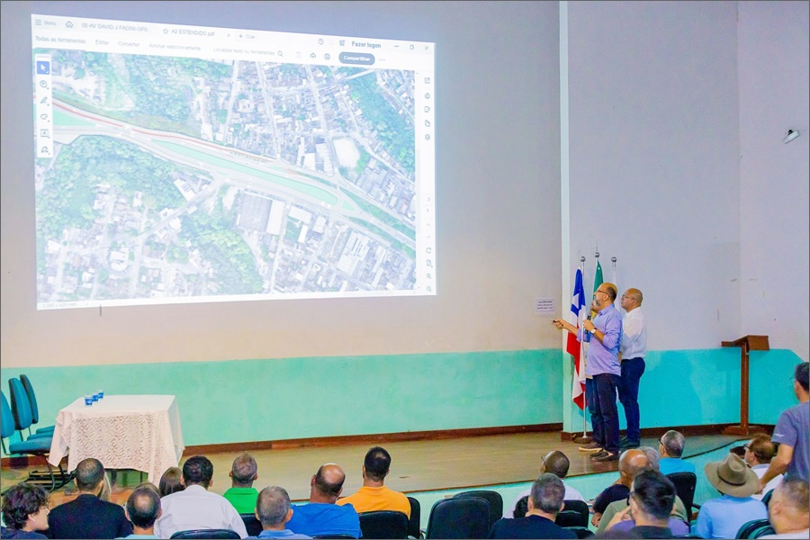 O prefeito Robério Oliveira reuniu, nesta sexta-feira (20), no Auditório do IFBA, empresários e comerciantes da Avenida David Jonas Fadini para apresentar o projeto de pavimentação da via, uma das mais extensas e estratégicas de Eunápolis. A avenida margeia a BR-101 no trecho urbano e segue em direção à zona norte da cidade, sendo considerada fundamental para o movimentação econômica e mobilidade urbana.