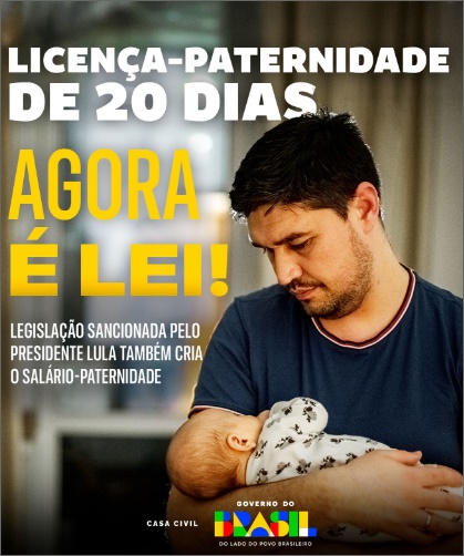 O presidente da República, Luiz Inácio Lula da Silva, sancionou a Lei 15.371/26, que amplia de 5 para 20 dias a licença-paternidade. O objetivo é fortalecer a presença dos pais nos primeiros dias de vida dos filhos e promover a corresponsabilidade no cuidado com a criança.