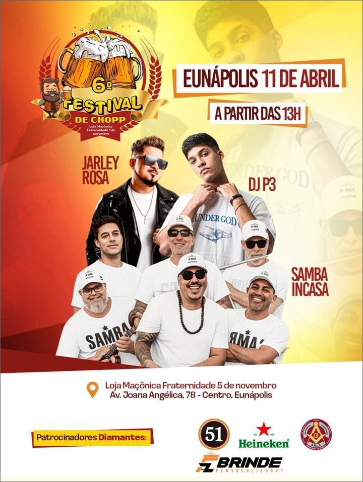 Um dos eventos mais aguardados do calendário regional já tem data marcada: no dia 11 de abril de 2026, das 13h às 19h, será realizado o Festival de Chopp 2026, promovido pela Loja Maçônica Fraternidade 5 de Novembro.