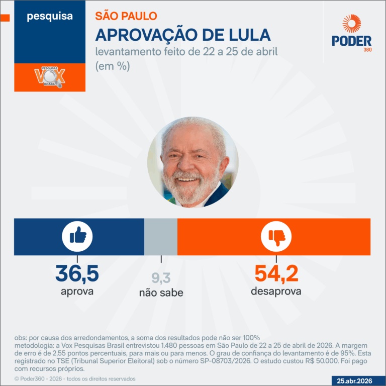 A maioria (54,2%) dos eleitores do Estado de São Paulo desaprova a gestão do petista, enquanto 36,5% aprovam e 9,3% não sabem.