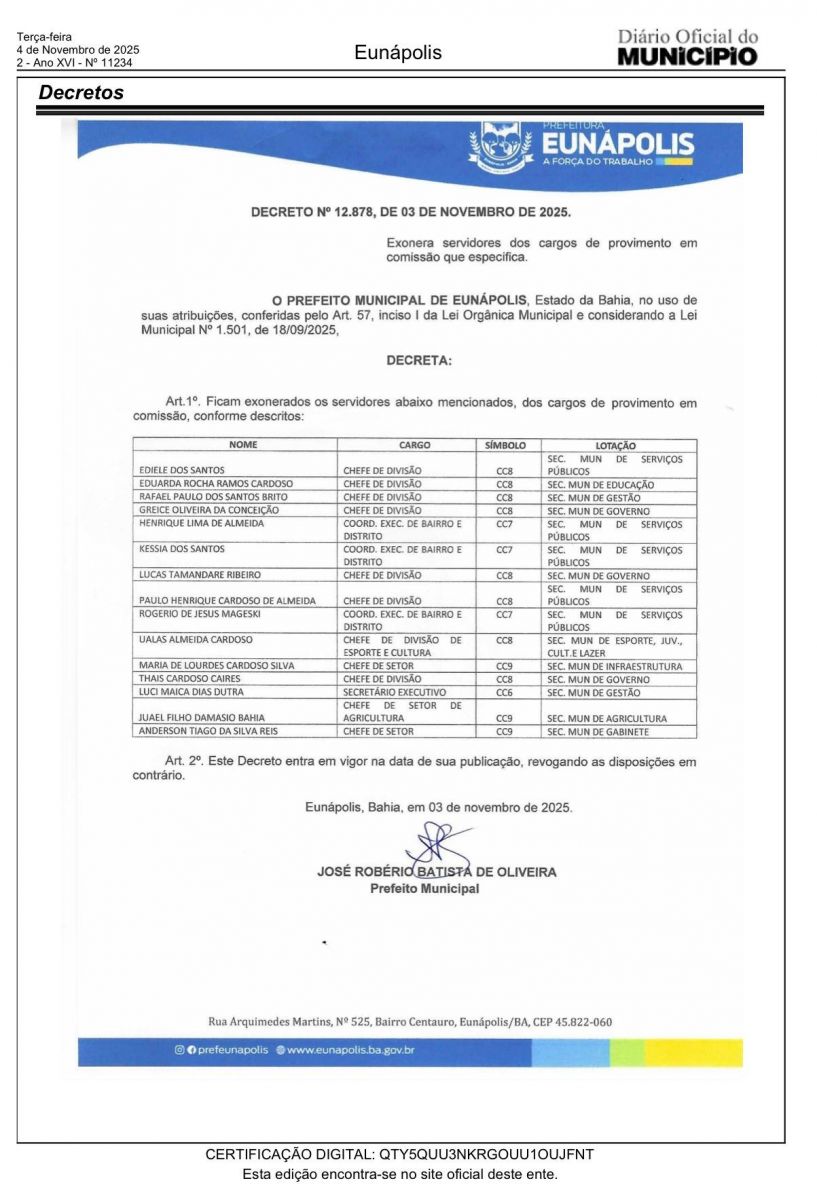 O prefeito de Eunápolis, Robério Oliveira tomou posição firme exonerando nesta terça-feira, 04, todos os nomeados do vereador Adriano Cardoso.