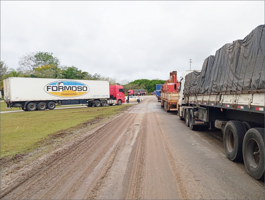 Caminhoneiros permaneceram parados por mais de 18 horas no Trevo da Veracel, em condições desumanas, já que não existem locais para alimentação e nem necessidades básicas.