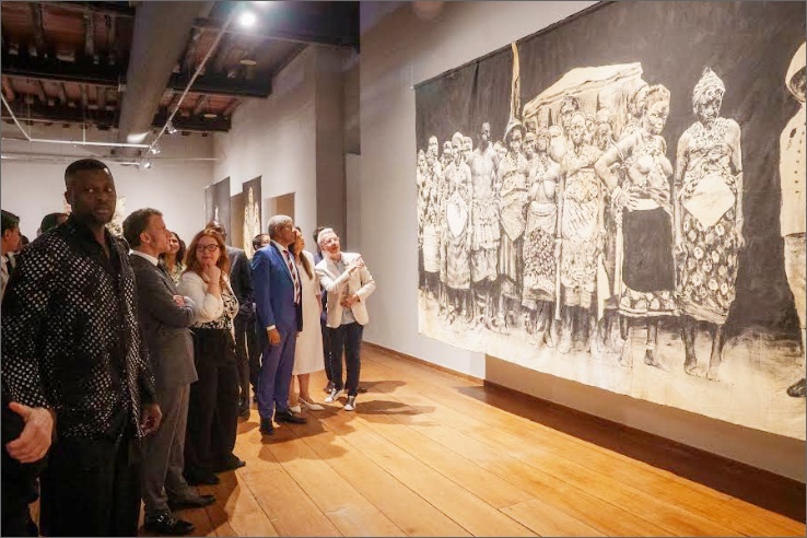 Exposição de Roméo Mivekannin – Macron visitou também a exposição “O Avesso do Tempo”, do artista beninense Roméo Mivekannin, em cartaz no MAM-BA. A mostra, originalmente apresentada no Louvre-Lens, na França, amplia o diálogo entre as instituições e destaca a Bahia como território de memória viva. A visita foi conduzida pelo próprio artista.
