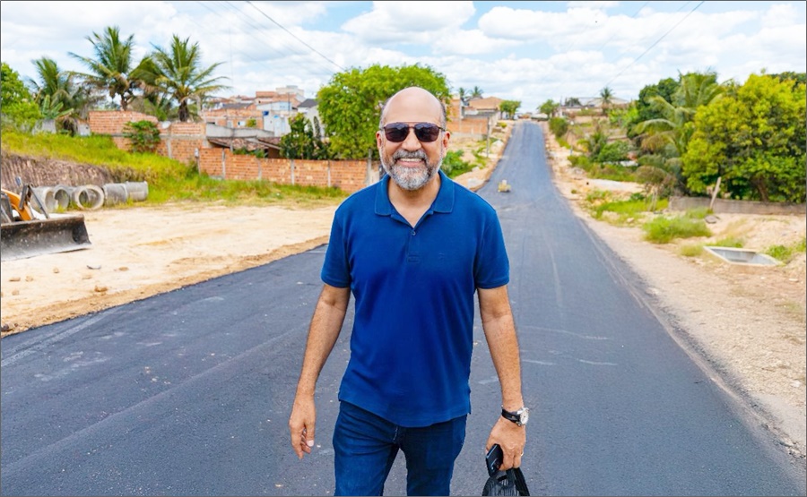 O prefeito Robério Oliveira vistoriou, nesta sexta-feira (21), o andamento das obras na Rua Adolpho Xavier, via estratégica que conecta os bairros Dinah Borges e Alto da Boa Vista. A etapa de macrodrenagem foi concluída na quinta-feira (20), feriado, permitindo o avanço imediato para a preparação da base e o início da pavimentação asfáltica, que seguiu noite adentro.