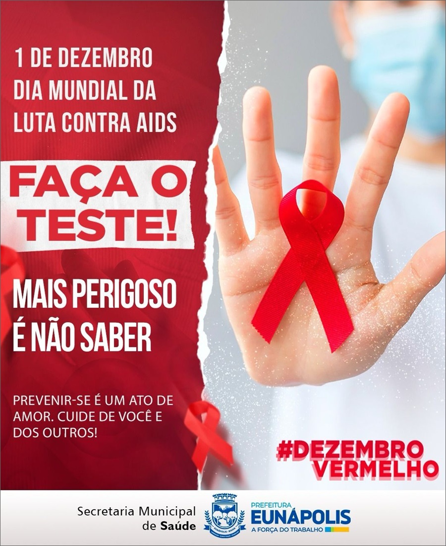 Em comemoração ao Dia Mundial de Luta Contra a AIDS, celebrado em 1º de dezembro, a Prefeitura de Eunápolis intensifica suas ações de prevenção e conscientização sobre o HIV/AIDS durante todo o mês de dezembro.