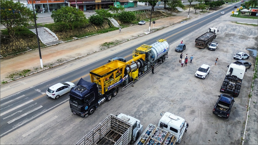 2026 começou com excelentes notícias em Eunápolis. O município é agora o primeiro da região a contar com uma usina própria de asfalto, autossuficiente em energia e adquirida com recursos 100% municipais durante a gestão do prefeito Robério Oliveira. O equipamento foi levado neste domingo (1º) para o espaço operacional onde será produzida a massa asfáltica do município, localizado no Distrito Industrial.