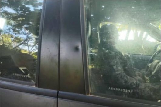 Imagens diversas que circulam nas redes sociais mostram o veículo com marcas de disparos de arma de fogo.