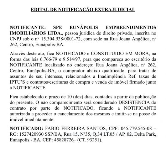 Edital extrajudicial SPE Eunápolis Empreedimento