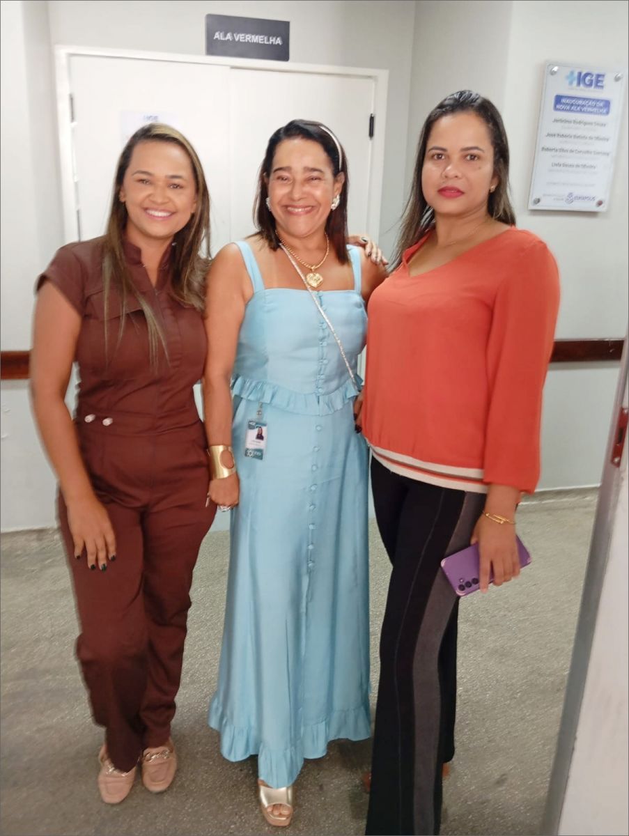 Aleane Almeida (Coordenadora do Serviço Social), Cida Nunes (Relações Públicas) e Maiara Gouveia (Diretora de Departamento).