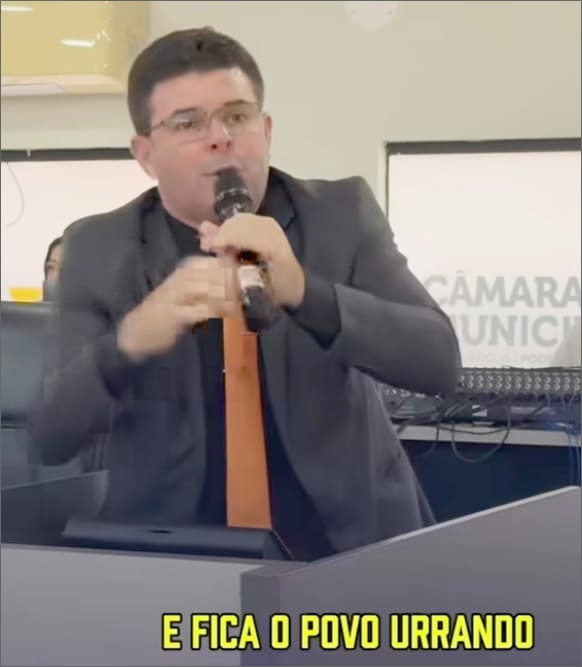Usou um termo impróprio em seu discurso inflamado. Foi grosso e indelicado com o povo de Eunápolis quando, ao criticar os gastos do Pedrão 2026, realizado pela Prefeitura, disse em alto e bom tom que o povo de Eunápolis urra.